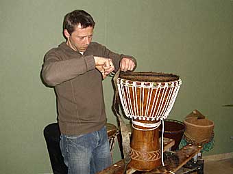 Burkhard ist gelernter Schreiner und passionierter Trommelbauer. Seine Arbeit kann ich euch nur wärmstens empfehlen. Alles andere macht ihr am besten direkt mit ihm aus: